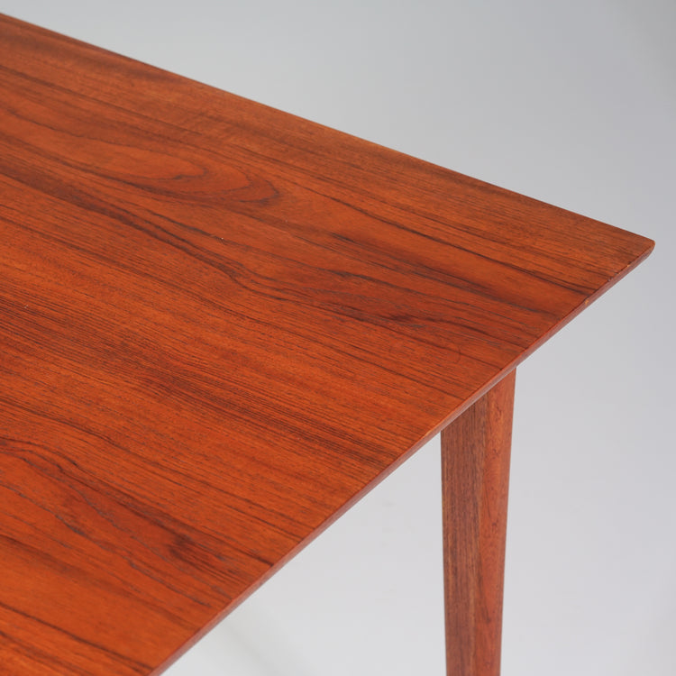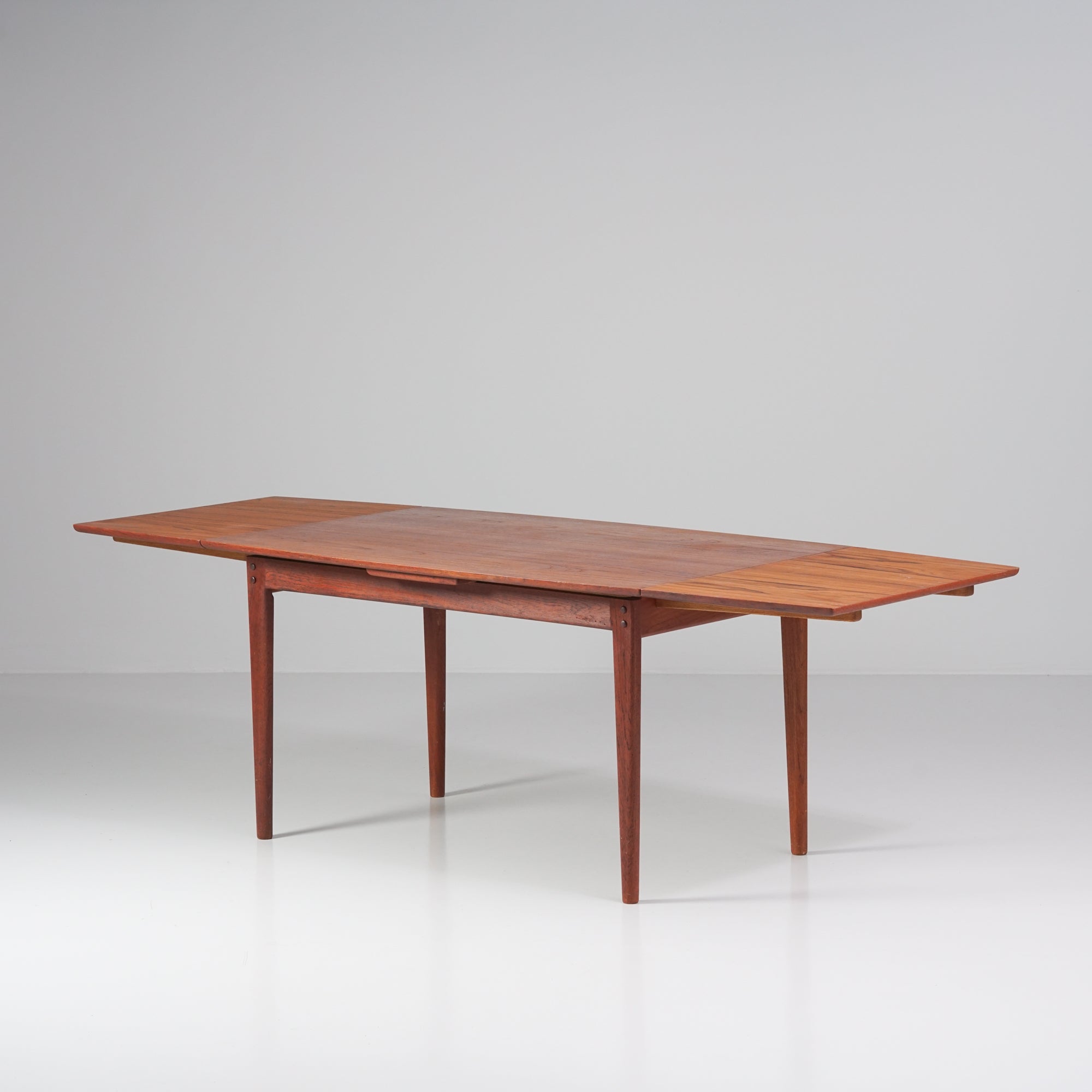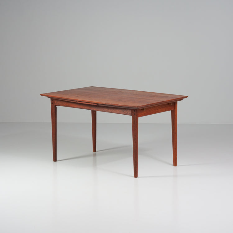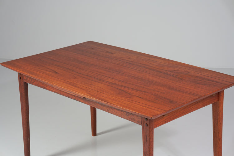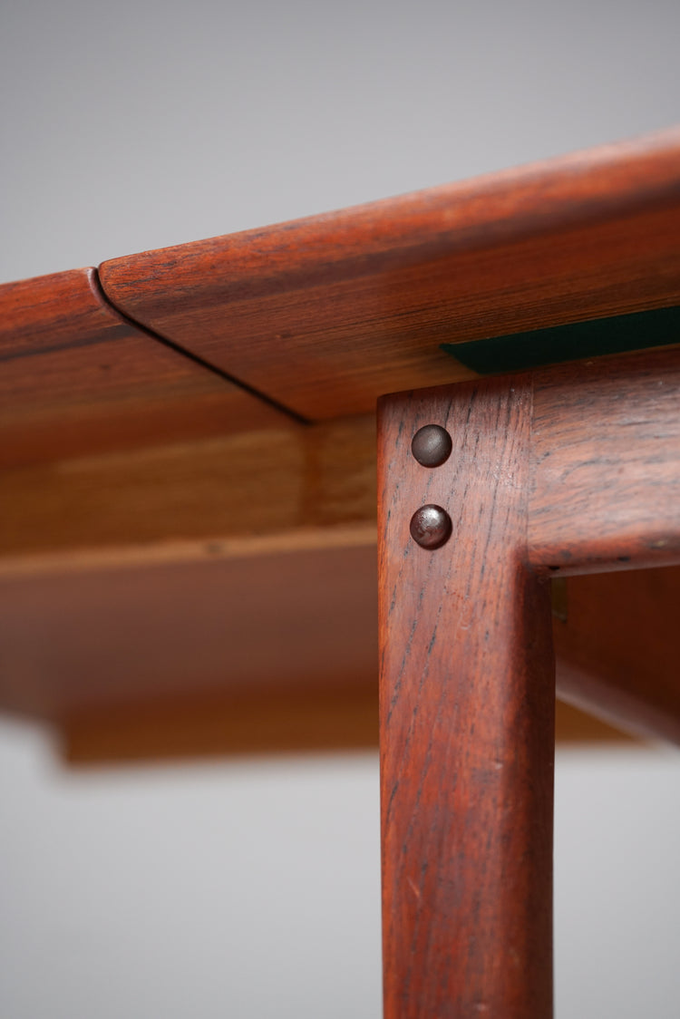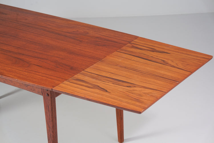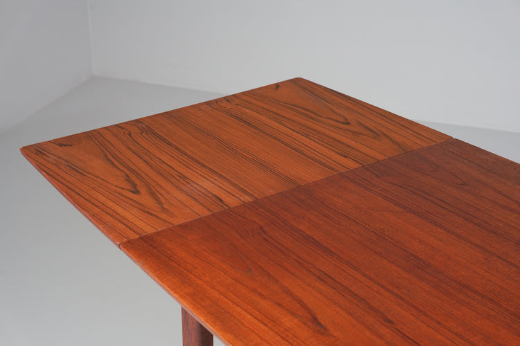 Extendable table, manufactured in Denmark, 1960s. Teak and oak. High-quality craftsmanship. Good vintage condition, minor patina consistent with age and use.