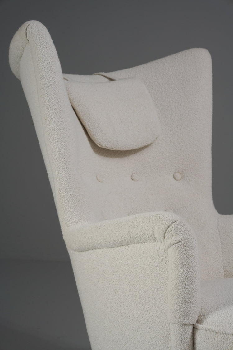 Armchair, design Carl-Gustaf Hiort af Ornäs, manufactured by Hiort Tuote Puunveisto, 1940s. Stained birch legs, reupholstered with model Orsetto quality fabric by Lauritzons. Good vintage condition, patina consistent with age and use.