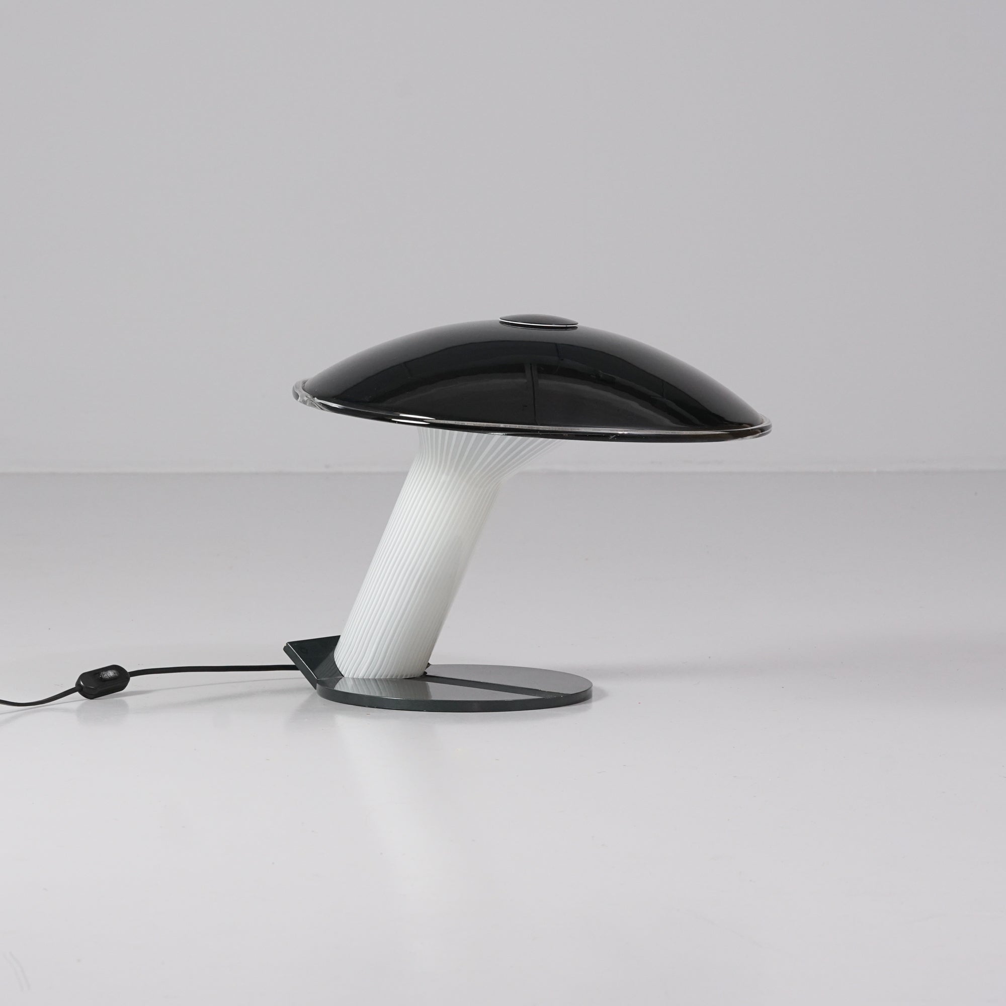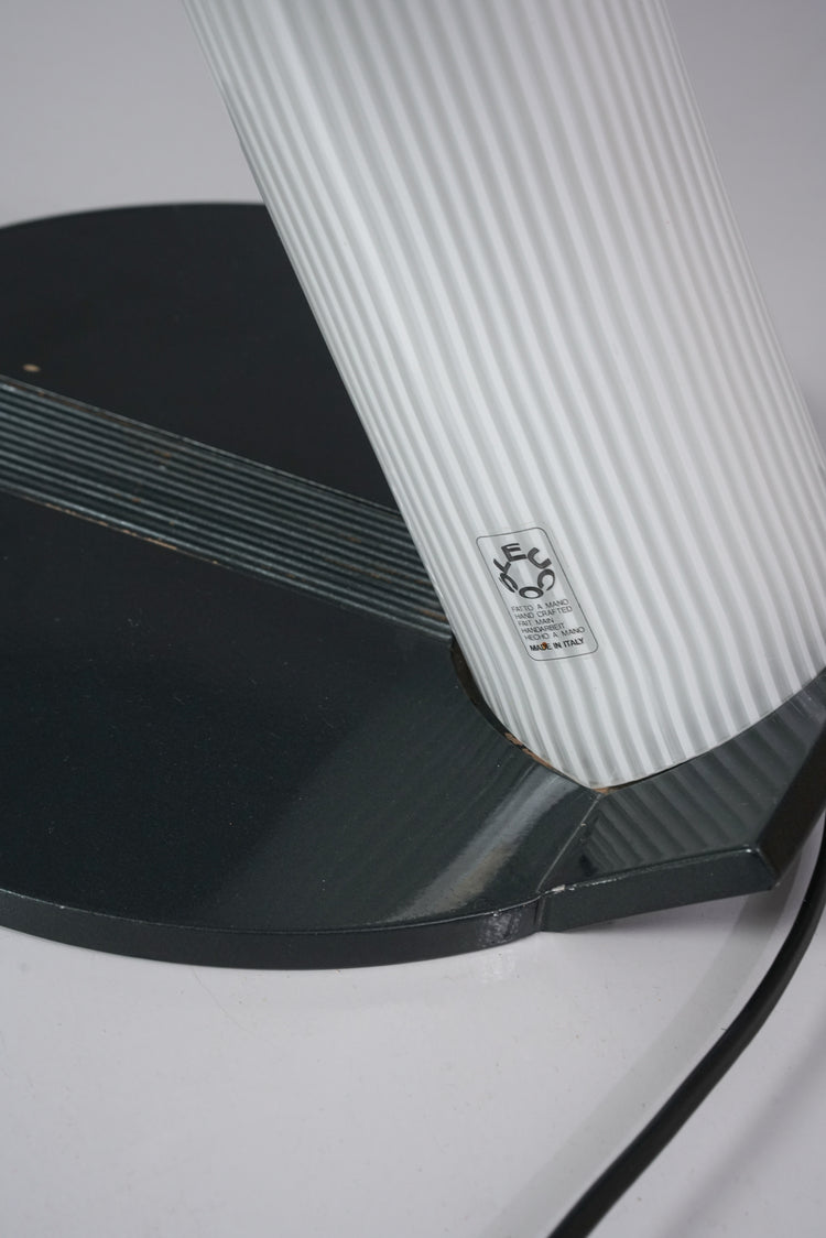 Table lamp, manufactured by Leucos, Italy, 1970s. Glass and metal. Good vintage condition, patina consistent with age and use. Marked.