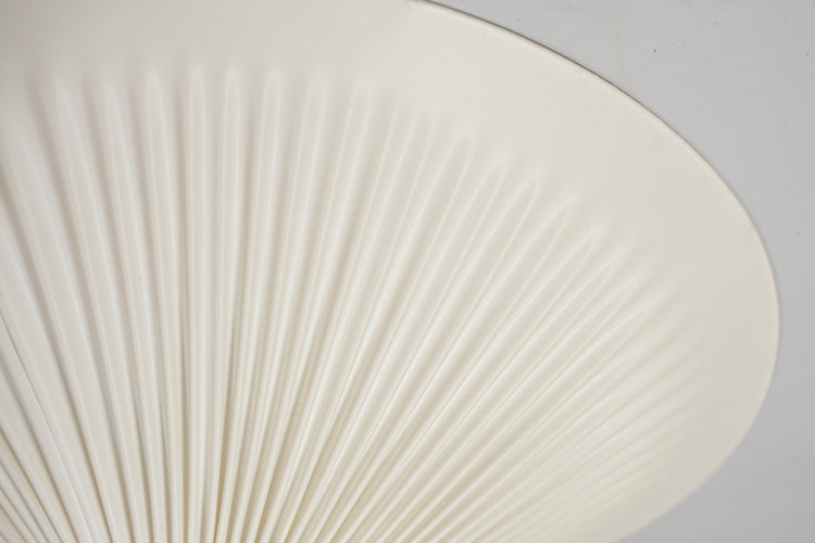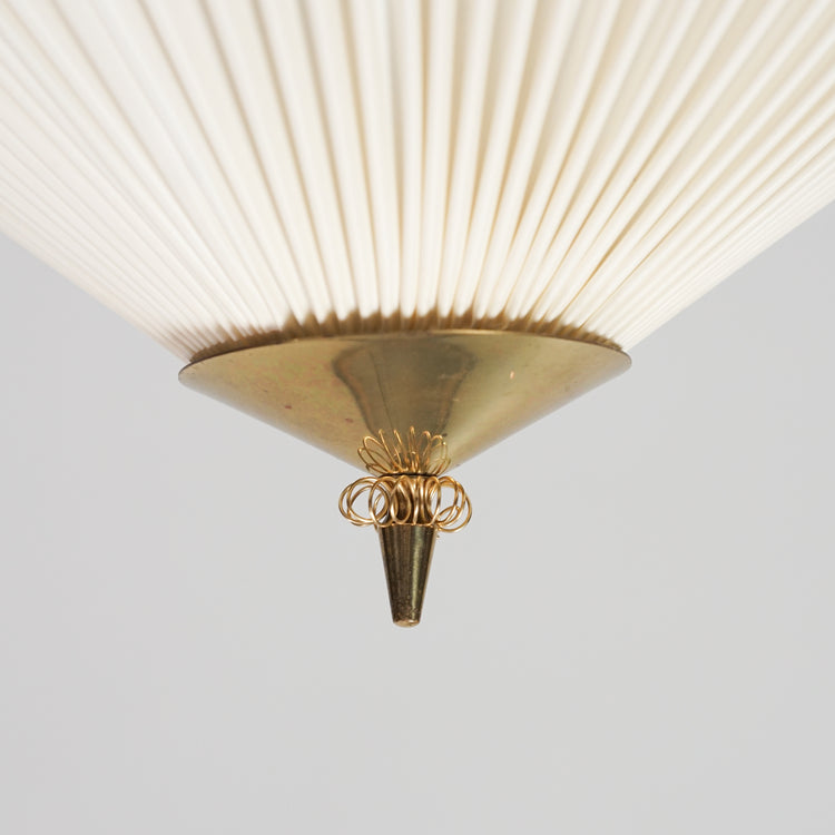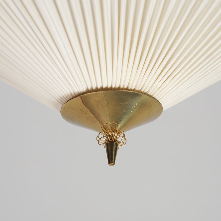Beautiful flush mount, manufactured by Itsu, 1940s, plastic shade, brass details. Good vintage condition, minor patina consistent with age and use.