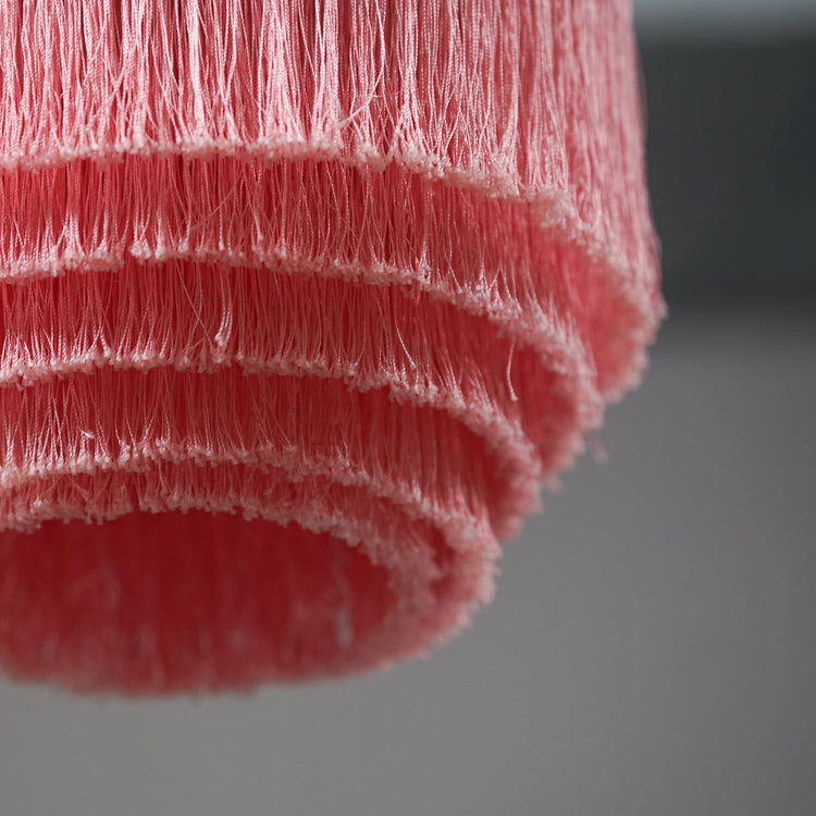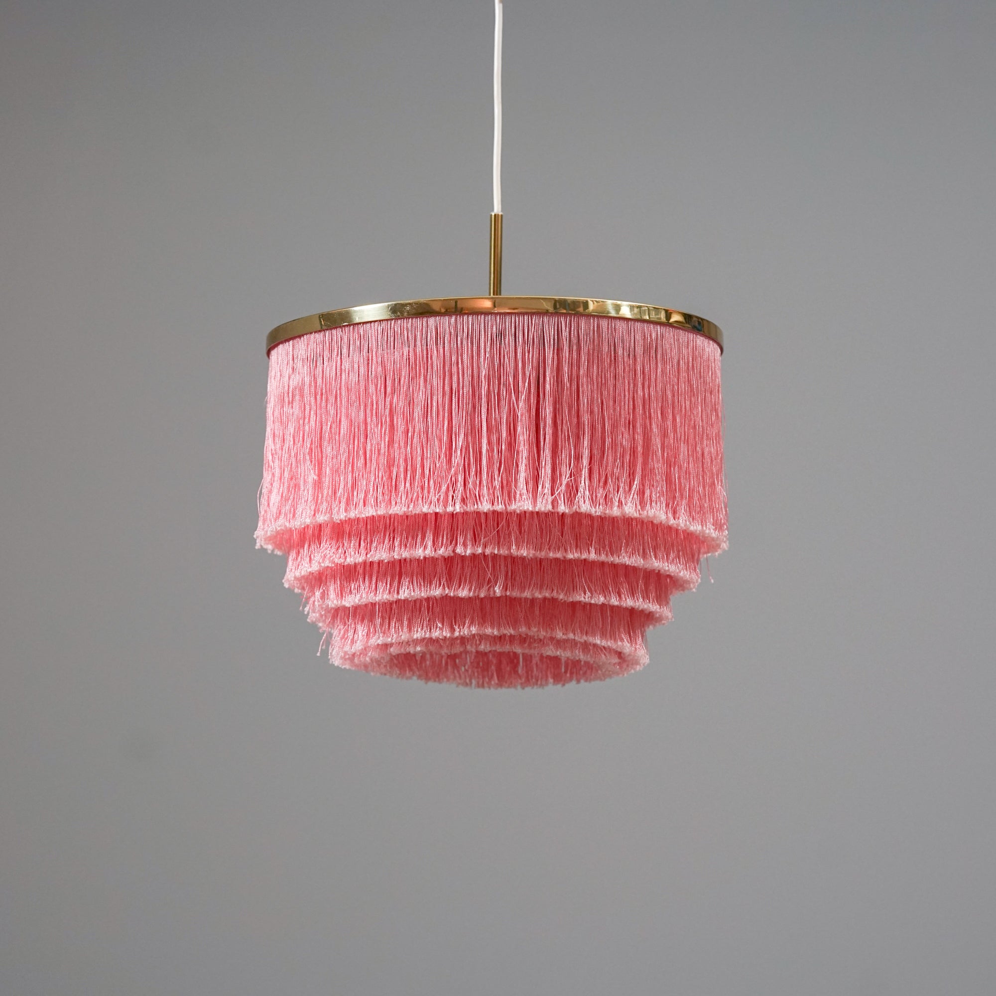 Pendant, design Hans-Agne Jakobsson, manufactured by AB Markaryd, 1960s. Brass frame, pink fringes. Good vintage condition, minor patina consistent with age and use.
