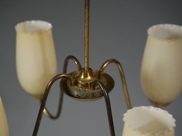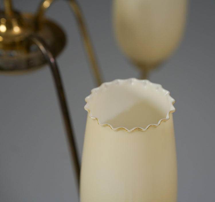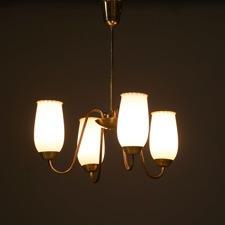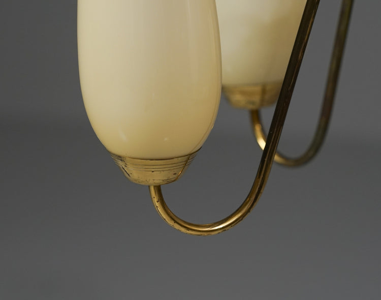 Kattovalaisin, valmistanut MELVA, 50-luku. Opaali lasikuvut, messinkirunko. Hyvä kunto, ajan patinaa.