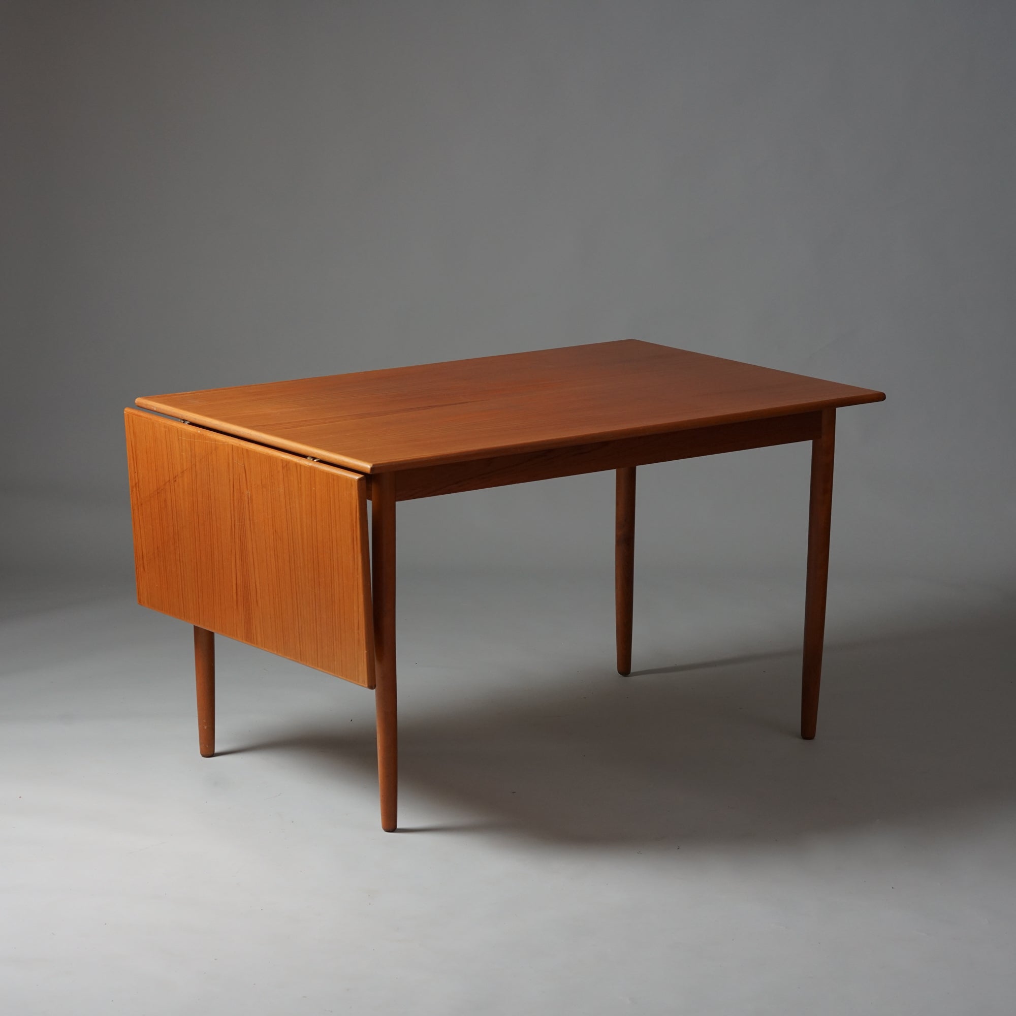 Foldable dining table, 1950/1960s, Sweden, teak. The dining table has a foldable extension piece. Good vintage condition, patina consistent with age and use.