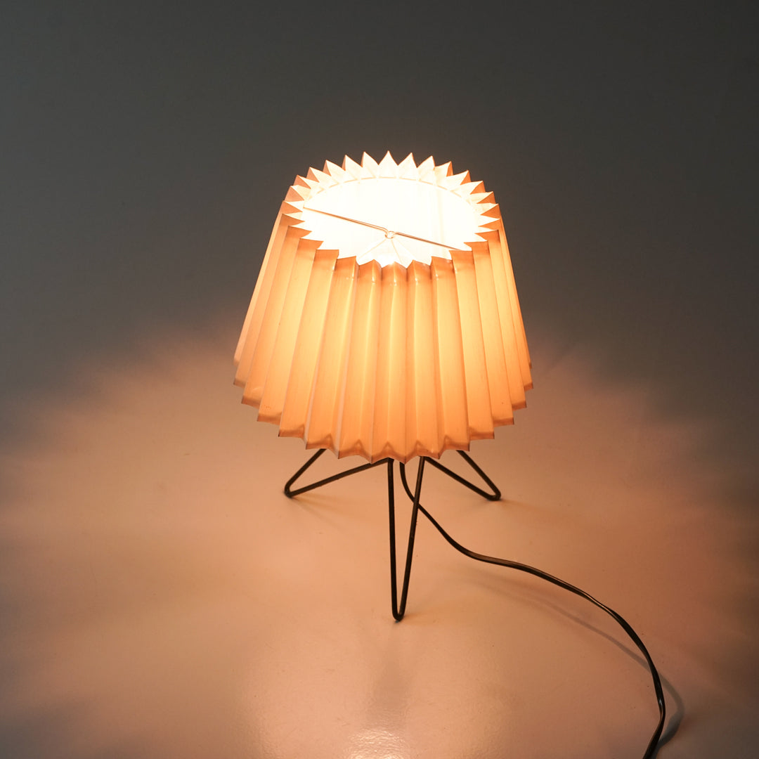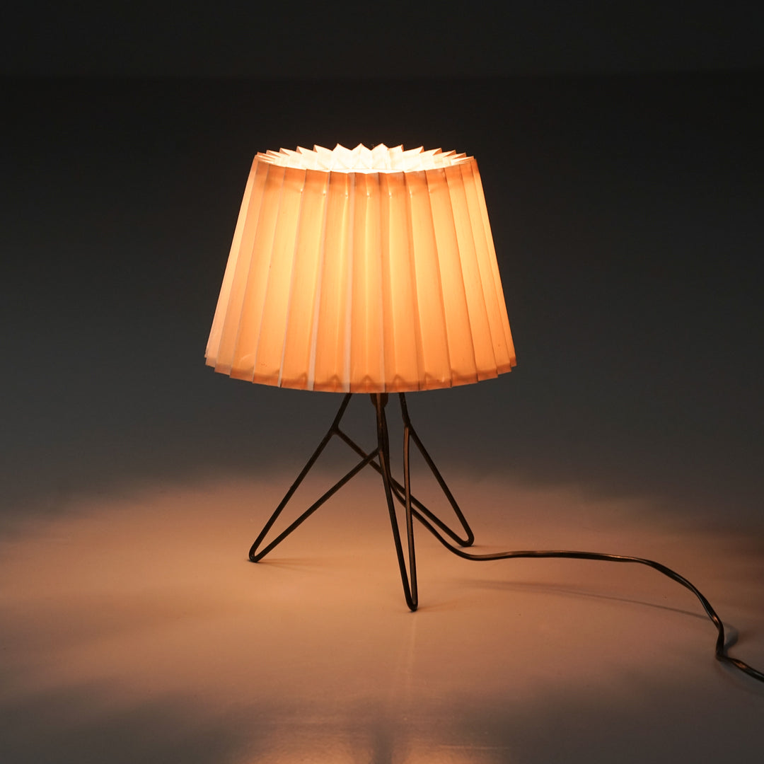 Table lamp, manufactured in Finland, 1960s. Metal frame, later changed paper shade. Good vintage condition, patina consistent with age and use.