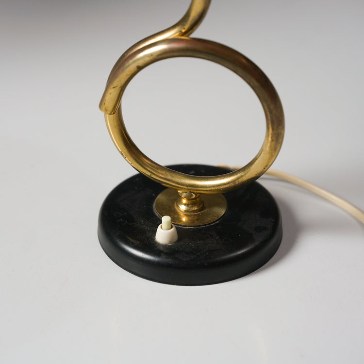 Pair of table lamps, manufactured by Valinte, 1950s. Frame painted metal adn brass. Wooden slat shades. Marked. Good vintage condition, patina consistent with age and use. The table lamps are sold together. The price indicated is the price for the set.