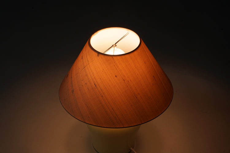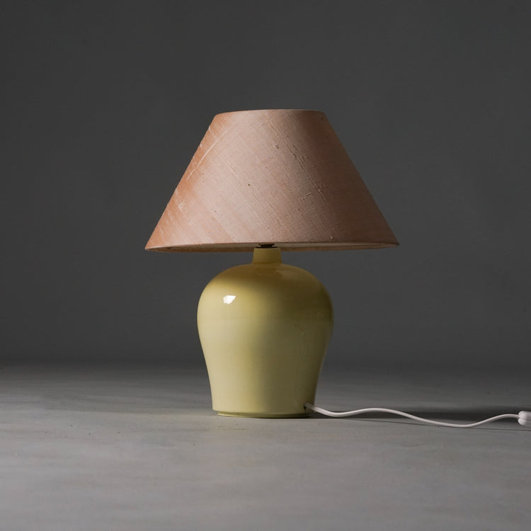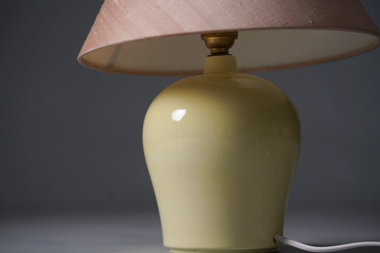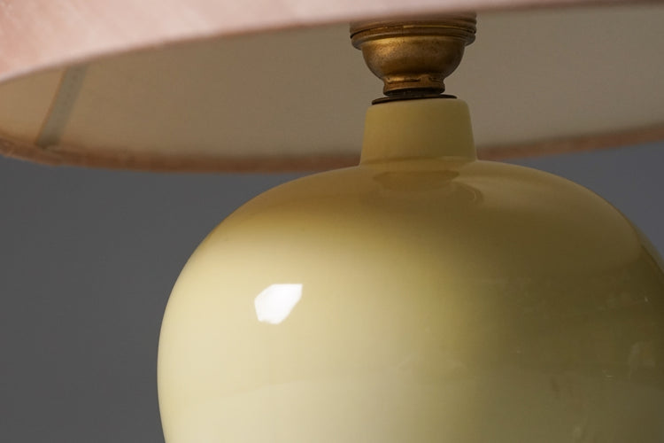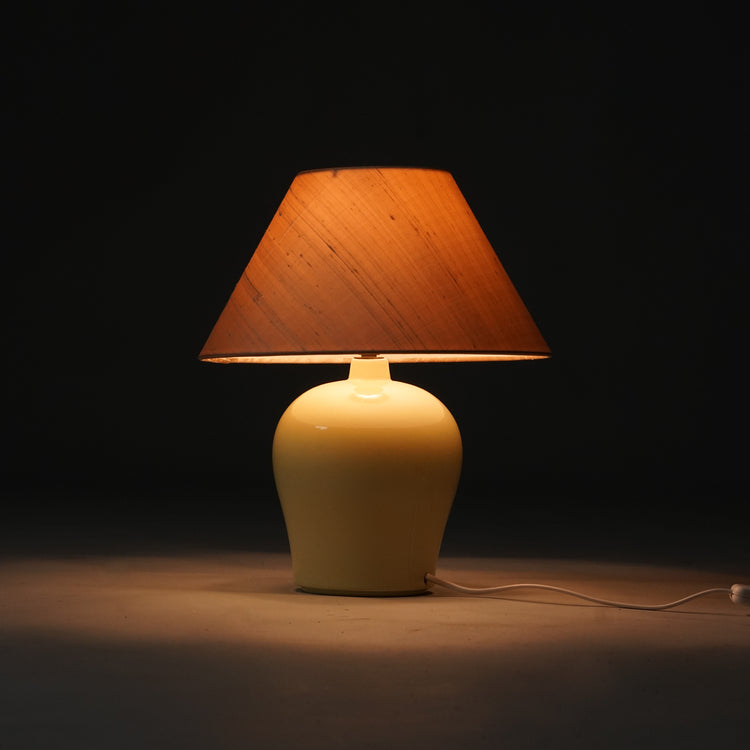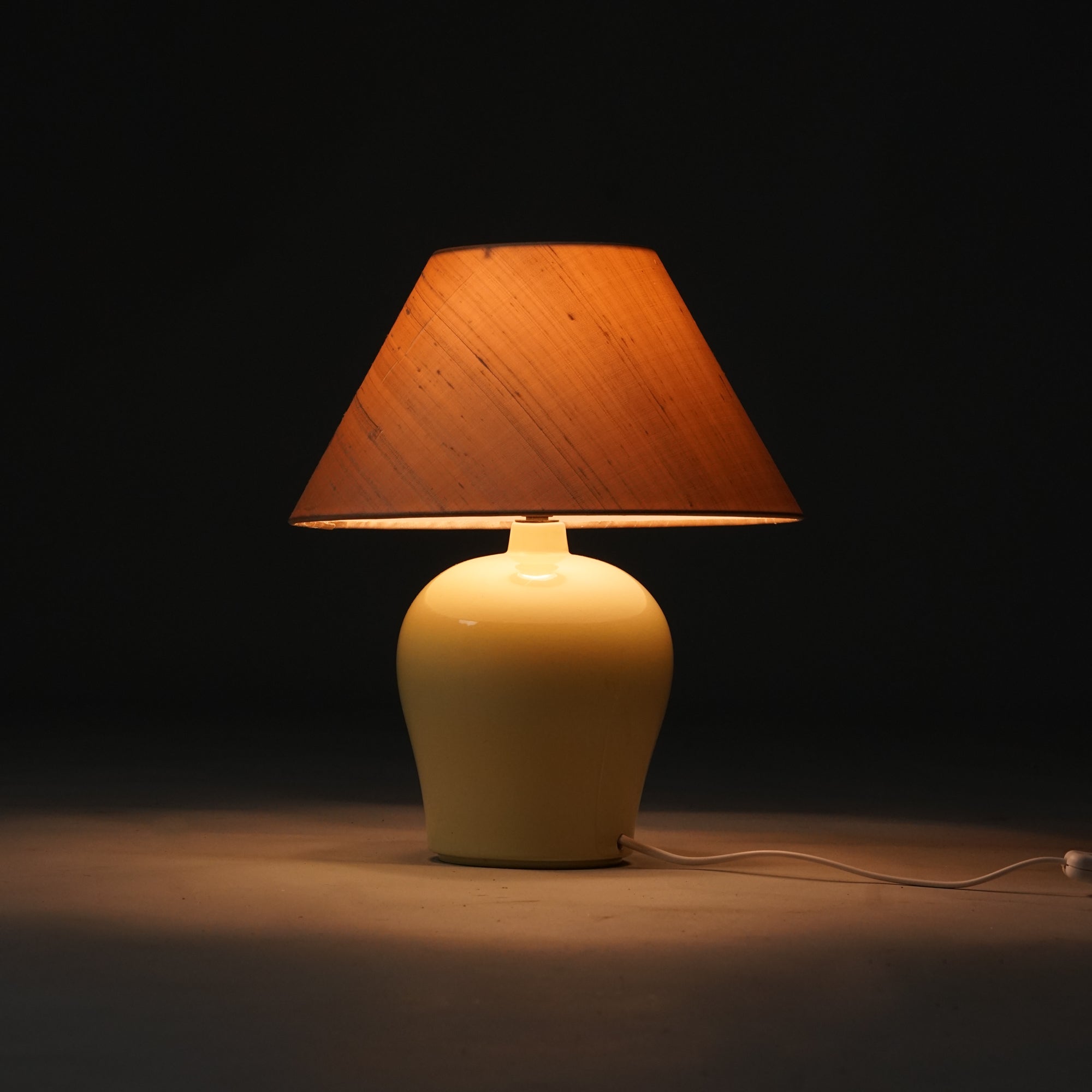 Table lamp, manufactured in Sweden, 1940s. Ceramic frame, fabric shade. Good vintage condition, patina consistent with age and use.