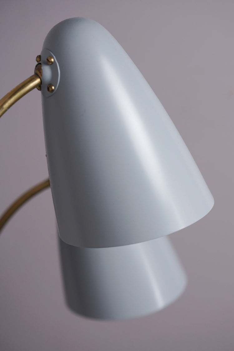 Pair of wall lights model 3054, designed by Lisa Johansson-Pape, manufactured by Stockmann-Orno, 1950s. Brass frame. Painted metal shade. The shade is reversible. Marked. Good vintage condition, minor patina and wear consistent with age and use.