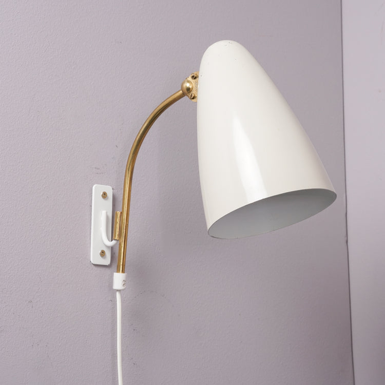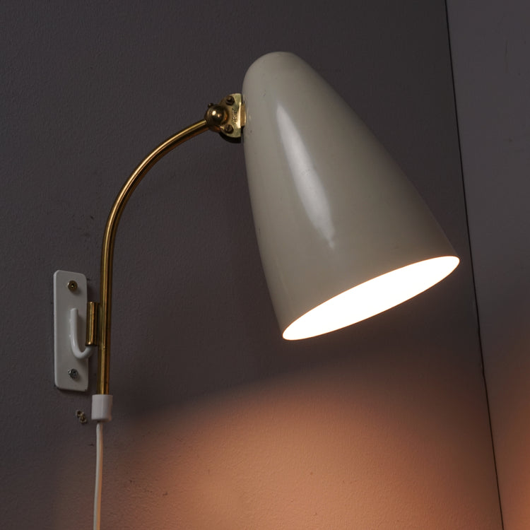 Wall lights model AH 43 (8 pieces sold separately), manufactured by Itsu, 1950s/1960s. Brass, shade painted metal. Marked. Good vintage condition, patina and wear consistent with age and use.