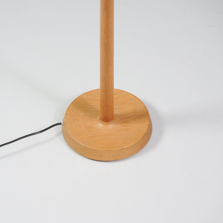 Floor lamp, manufactured in Sweden, 1960s. Oak frame. Acrylic and fabric shade. Good vintage condition, minor patina consistent with age and use.