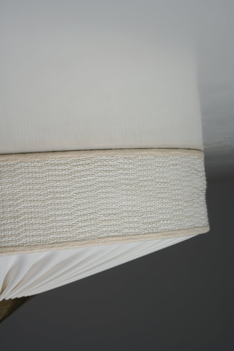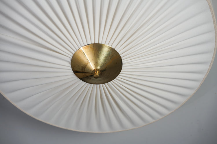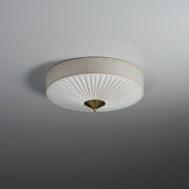 Flush Mount, manufactured by Valinte Oy, 1950s. Renewed fabric shade. Brass details. Good vintage condition, minor patina consistent with age and use.