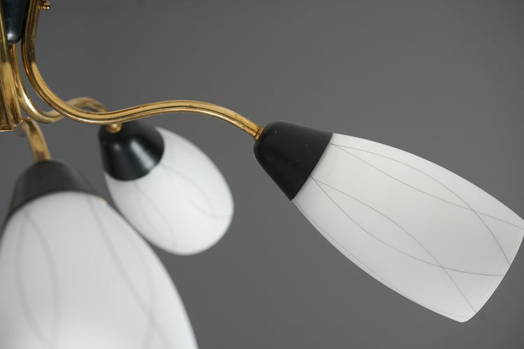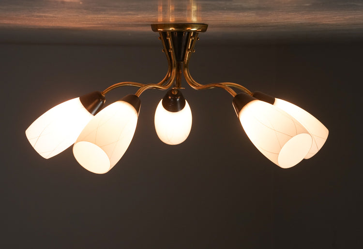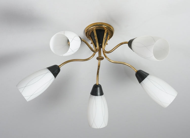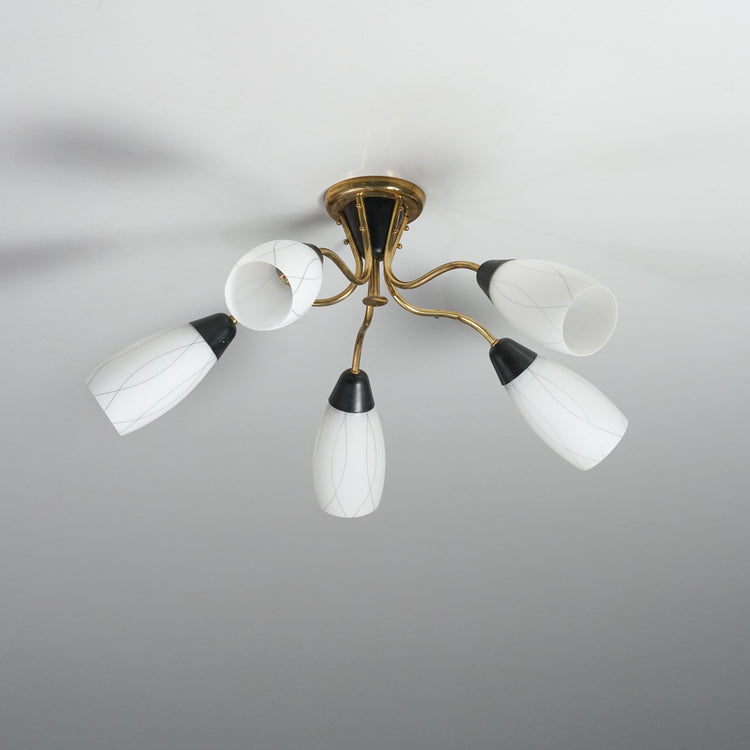Kattovalaisin, valmistanut Valinte Oy, 50-luku. Maalattu metallirunko, messinki yksityiskohdat. Maitolasi kuvut. Hyvä kunto, ajan patinaa.