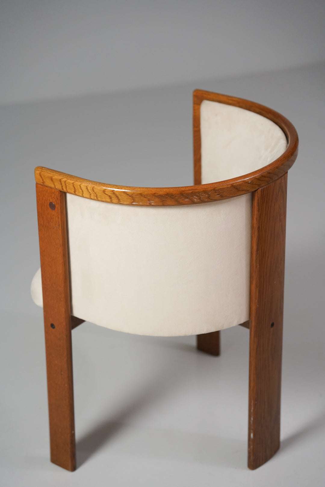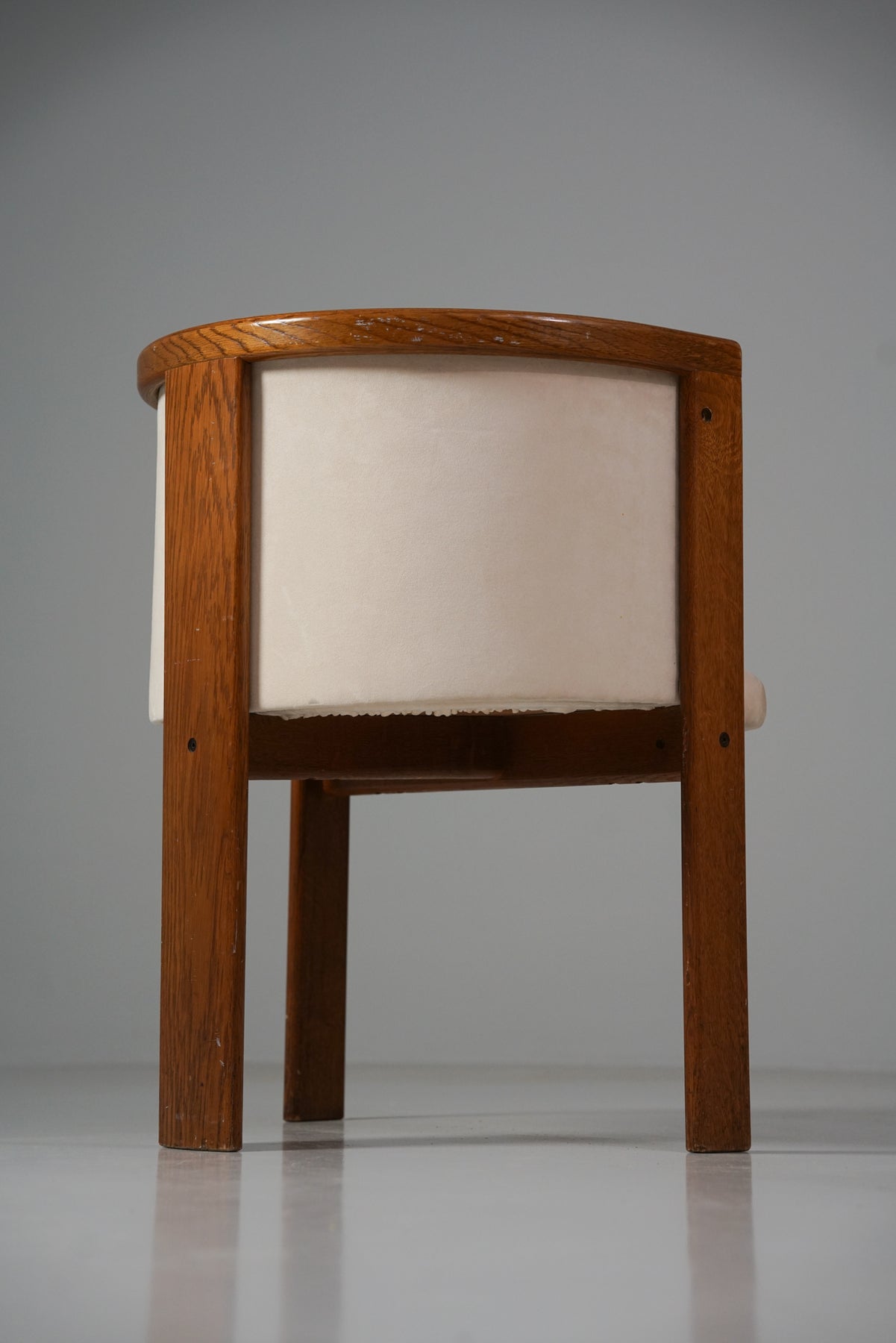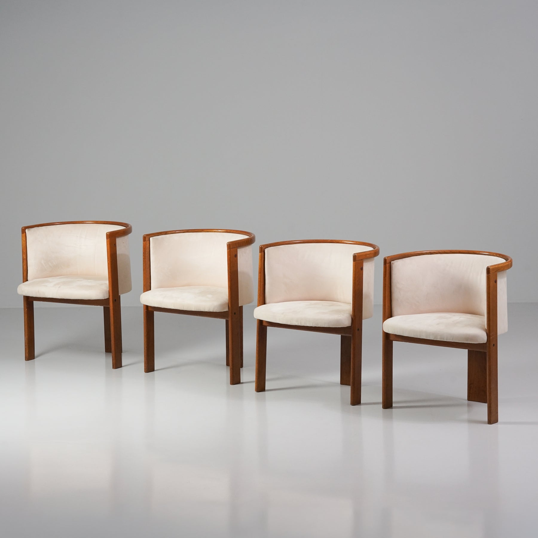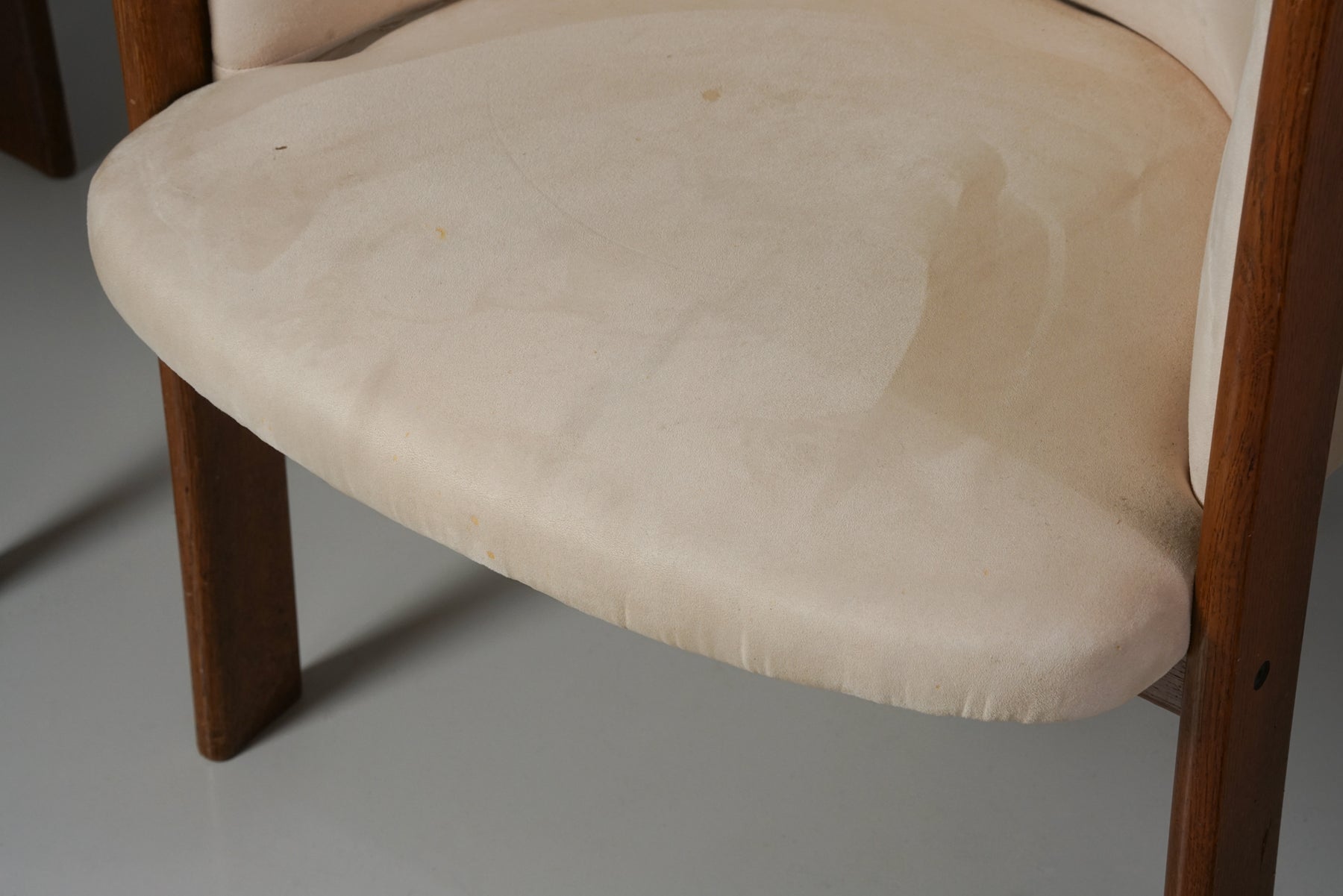 Tuolit (4 kpl myydään yhdessä), design Antti Nurmesemi, 70-luku. Tiikki runko, myöhemmin uudelleen verhoiltu alcantara -kankaalla. Hyvä kunto, ajan patinaa ja pientä jälkeä kankaassa. Kysy lisää uudelleenverhoilu mahdollisuudesta. Tuolit myydään yhdessä. Ilmoitettu hinta on settihinta.