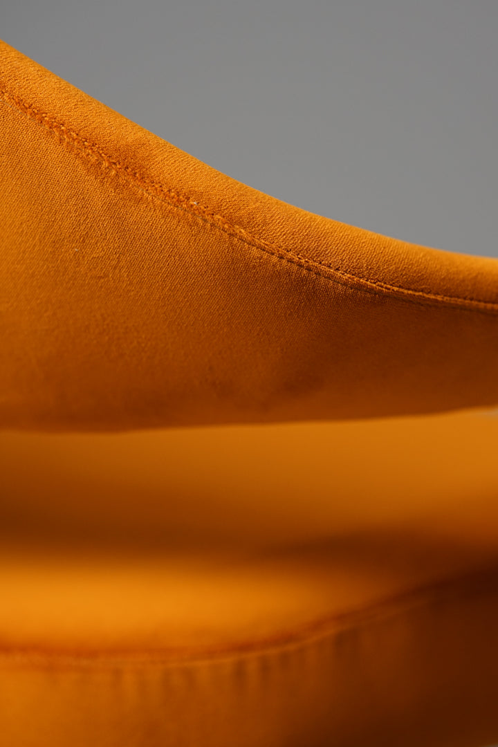 Oak legs. Reupholstered in Lauritzon "Elysee ochre" fabric. Metal spars on the legs.