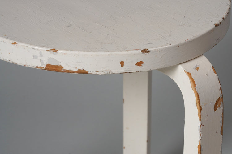 Model 60 stool, designed by Alvar Aalto, manufactured by Oy Huonekalu- ja Rakennustyötehdas Ab, 1930/1940s, painted birch. Good vintage condition, rich patina consistent with age and use.