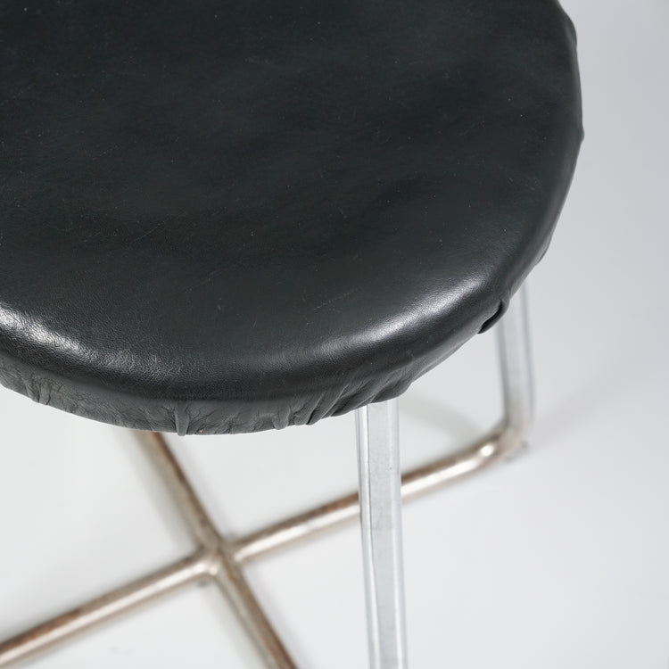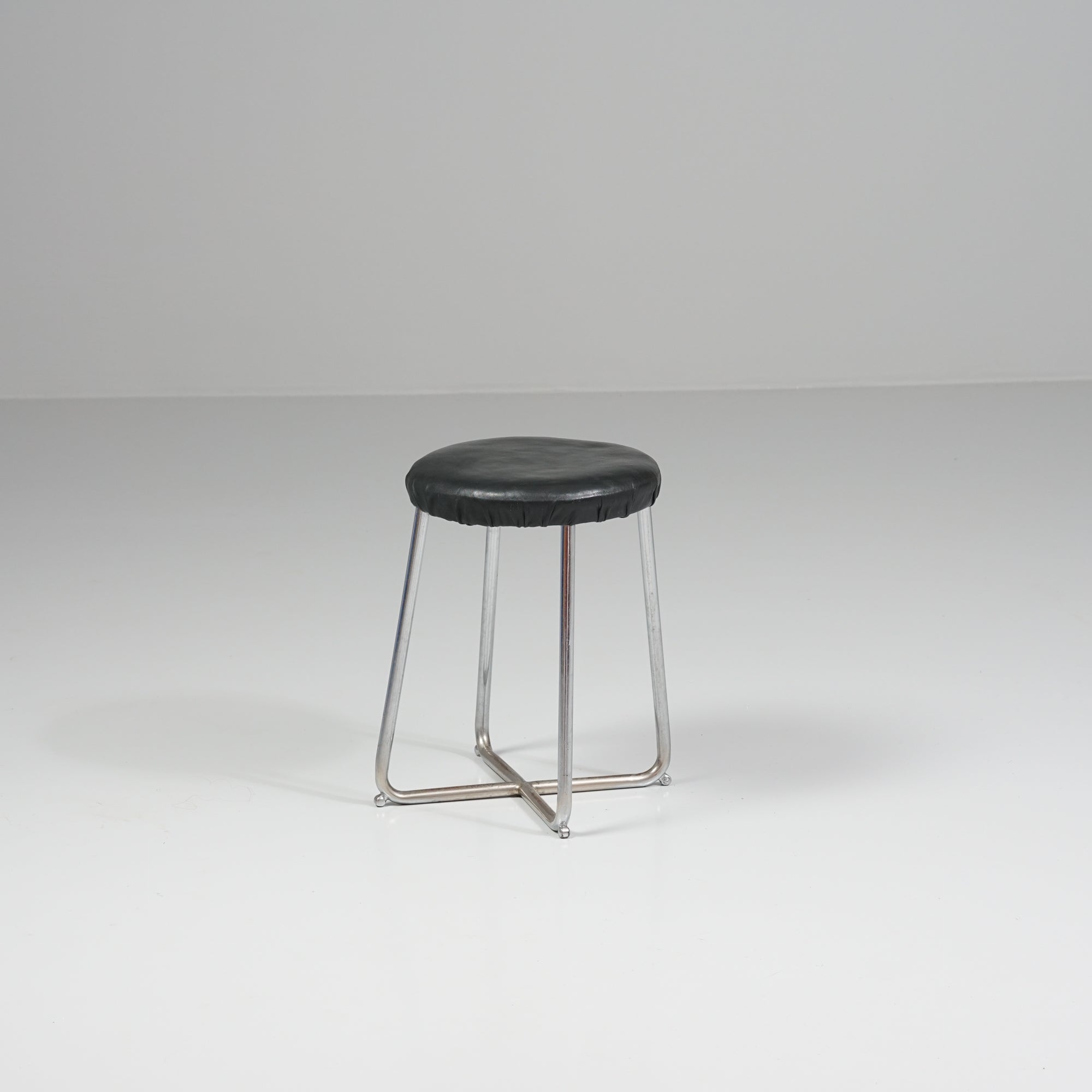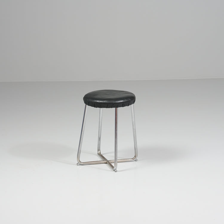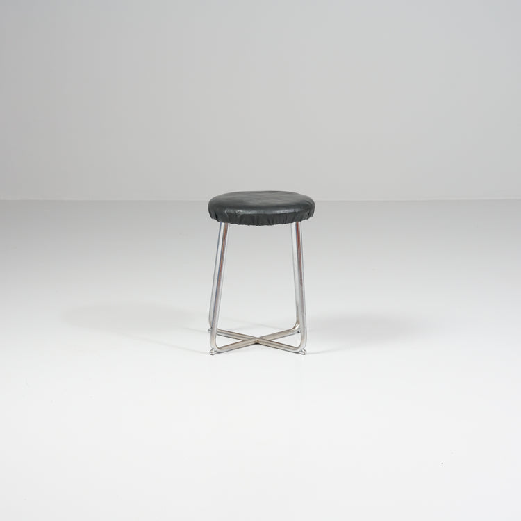 Stool, 1930/1940s. Chromed metal frame, faux leather seat. Good vintage condition, patina and wear consistent with age and use.