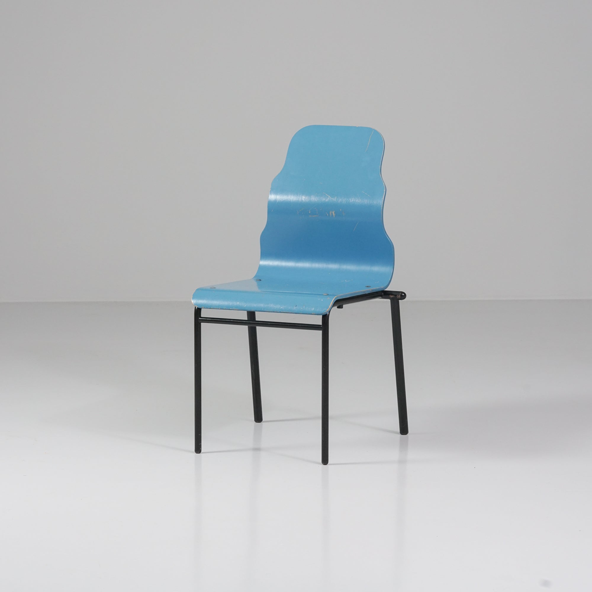 Rare model "Atski" chair, designed by Yrjö Kukkapuro, manufactured by Avarte, 1980s. Made for the Aalto University School of Arts, Design and Architecture (former Taideteollinen Korkeakoulu). Painted wood and metal. Good vintage condition, patina consistent with age and use.