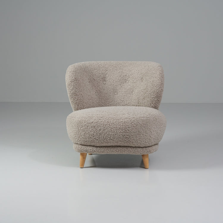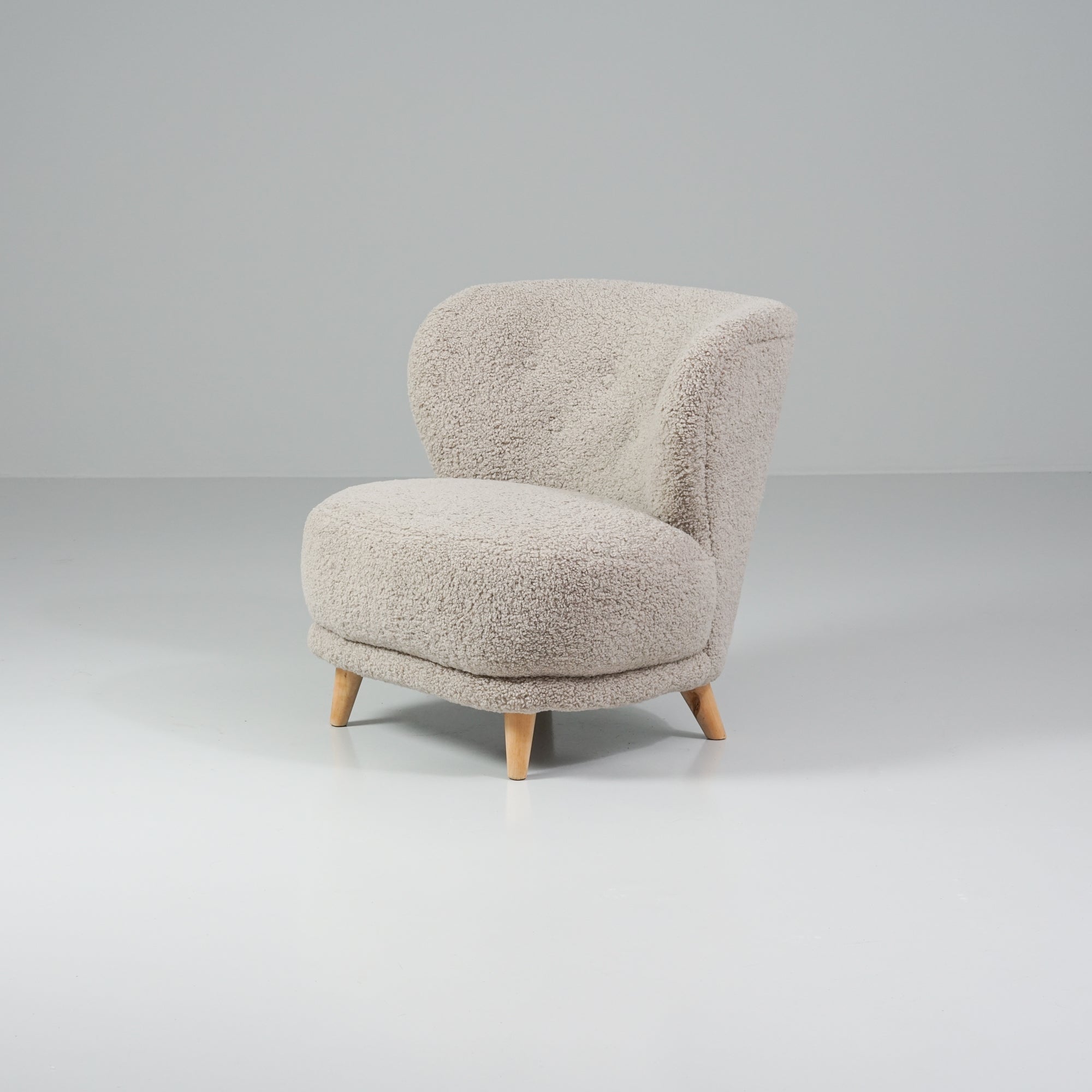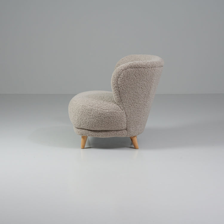 Armchair, manufactured by Boman, 1940/1950s. Birch frame, later reupholstered. Good vintage condition, minor patina consistent with age and use.