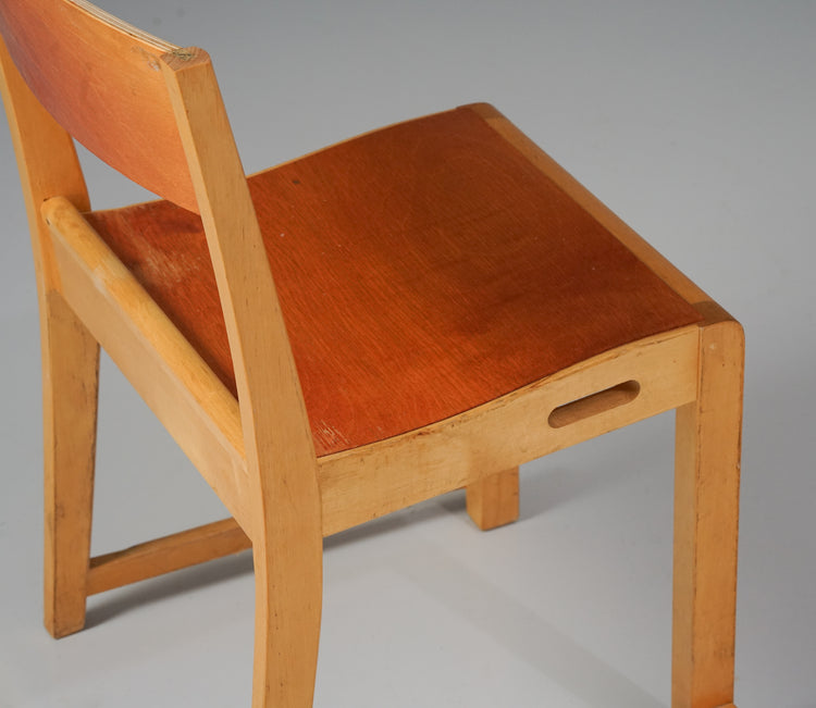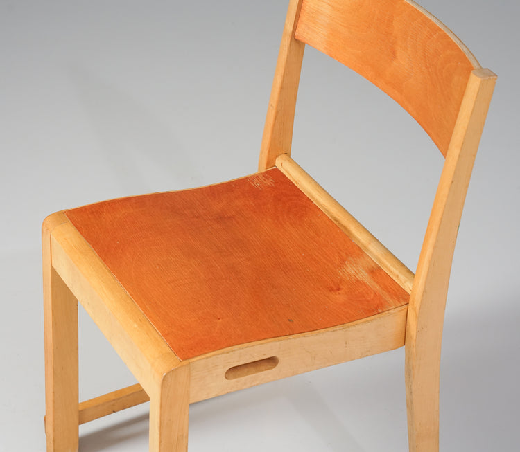 Stackable chairs (8 pieces sold separately), manufactured in Finland, 1950s. Birch. Good vintage condition, patina consistent with age and use. The chairs are sold separately. The price indicated is the price per chair.