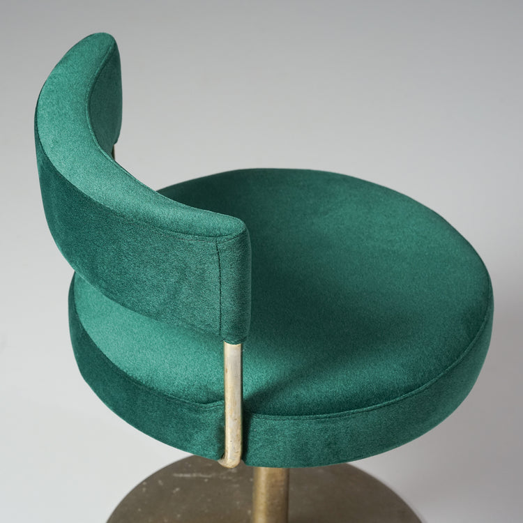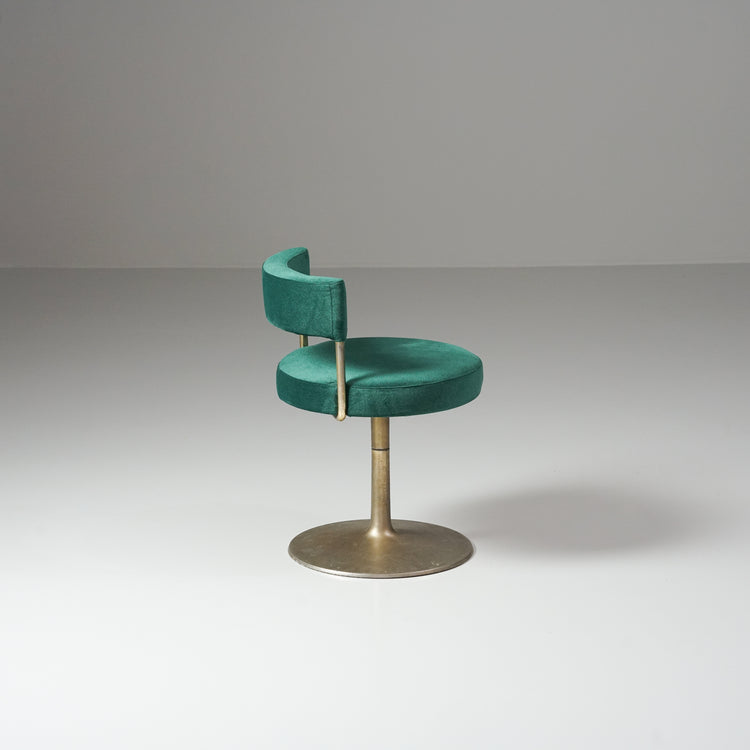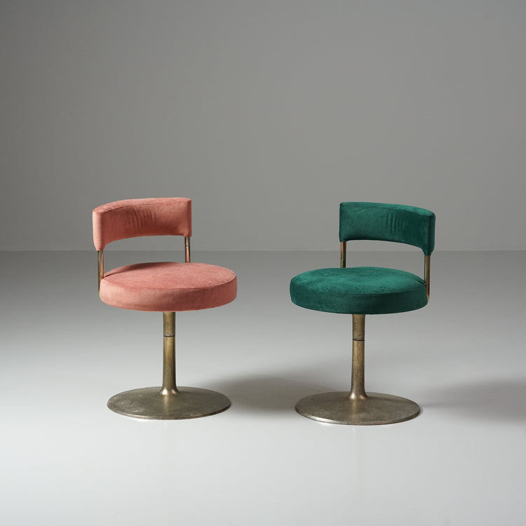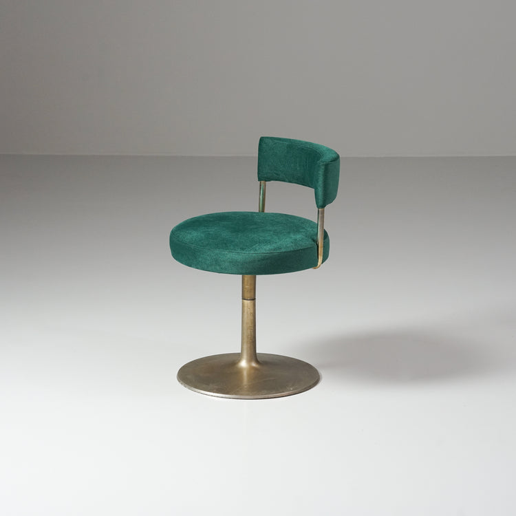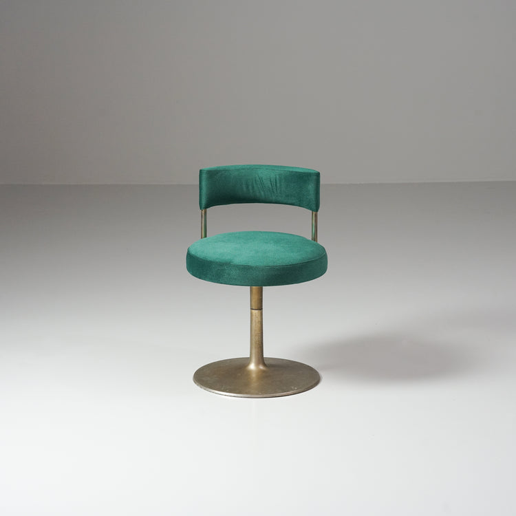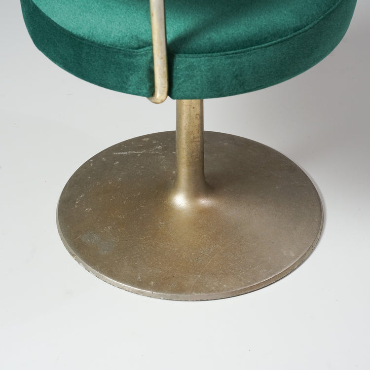 Pyörivä lounge tuoli (7 kpl myydään erikseen), 70-luku. Uudelleen verhoiltu laadukkaalla Lauritzonin "Baby Velour" -kankaalla. Messinkisoitu metallirunko. Hyvä kunto, ajan patinaa rungossa. Tuolit myydään erikseen. Ilmoitettu hinta on kappalehinta. Tuoleja saatavilla tarpeen mukaan lisää.