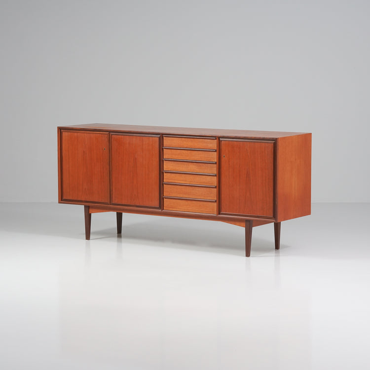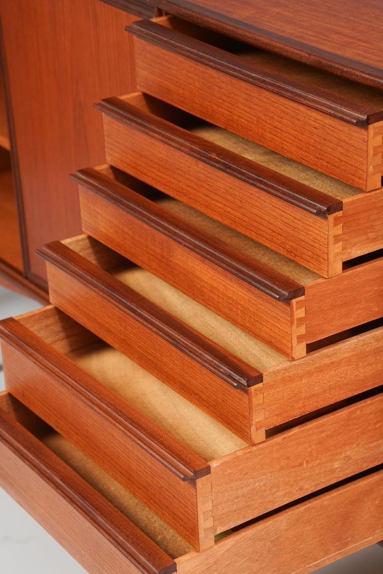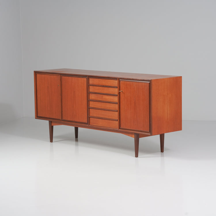 Sideboard, manufactured by Maurs Möbler Växjö, 1960s. Teak. Six drawers. Adjustable shelf height. Good vintage condition, minor patina consistent with age and use.