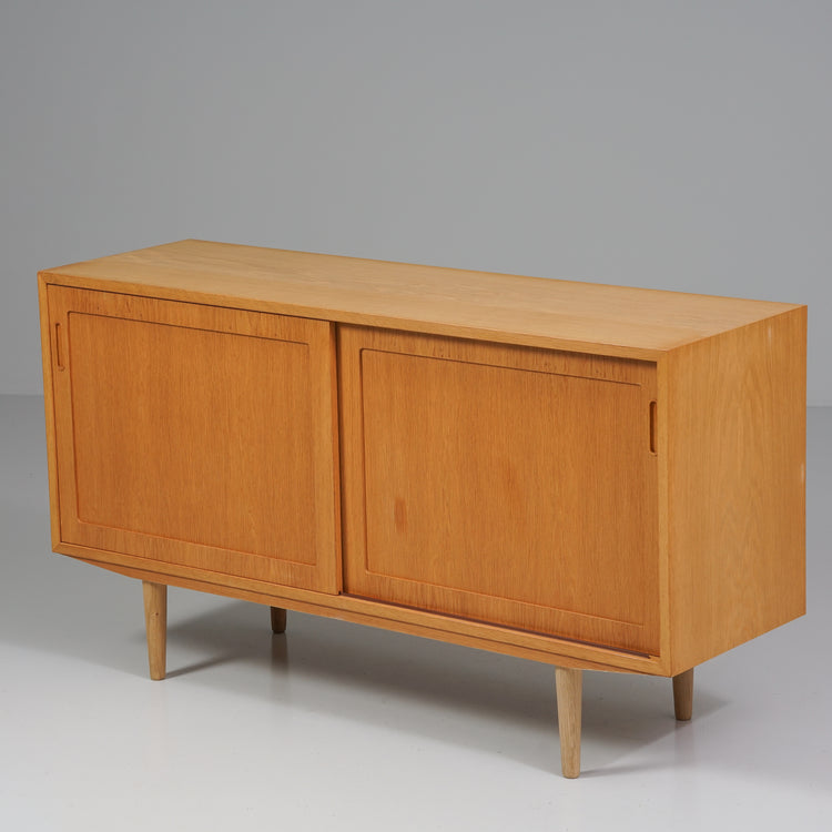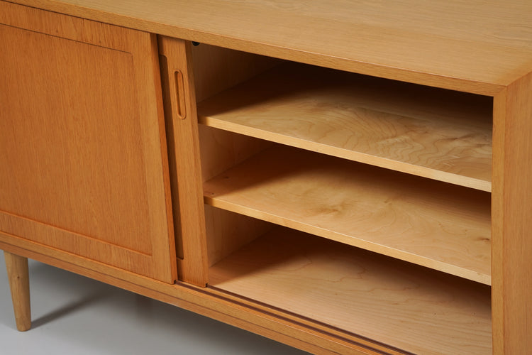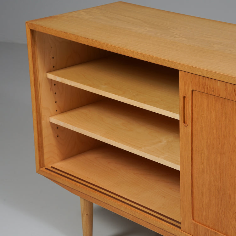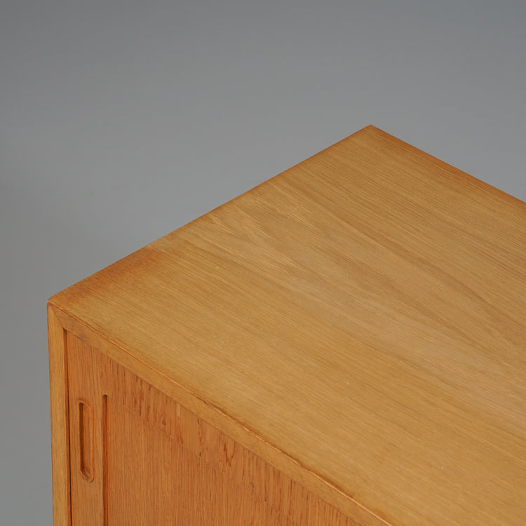 Senkki, design Poul Hundevad, Tanska, 60-luku. Tammea. Molemmilla puolilla kaksi hyllyä. Hyllykorkeus säädettävä. Hyvä kunto, ajan patinaa.