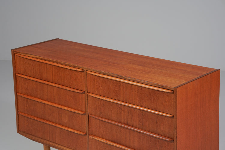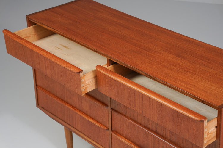 Sideboard/chest of drawers, manufactured in Denmark, 1960s. Teak. Good vintage condition, patina and minor wear consistent with age and use.