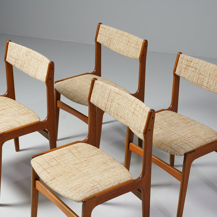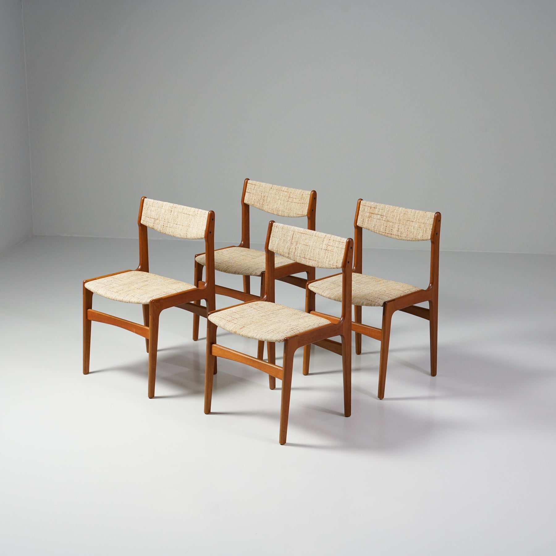 Chairs (4 pieces sold together), design Erik Buch, Denmark, 1950/1960s. Teak frame, wool fabric upholstery. Good vintage condition, minor patina consistent with age and use. The chairs are sold together as a set. The price indicated is the price for the set.