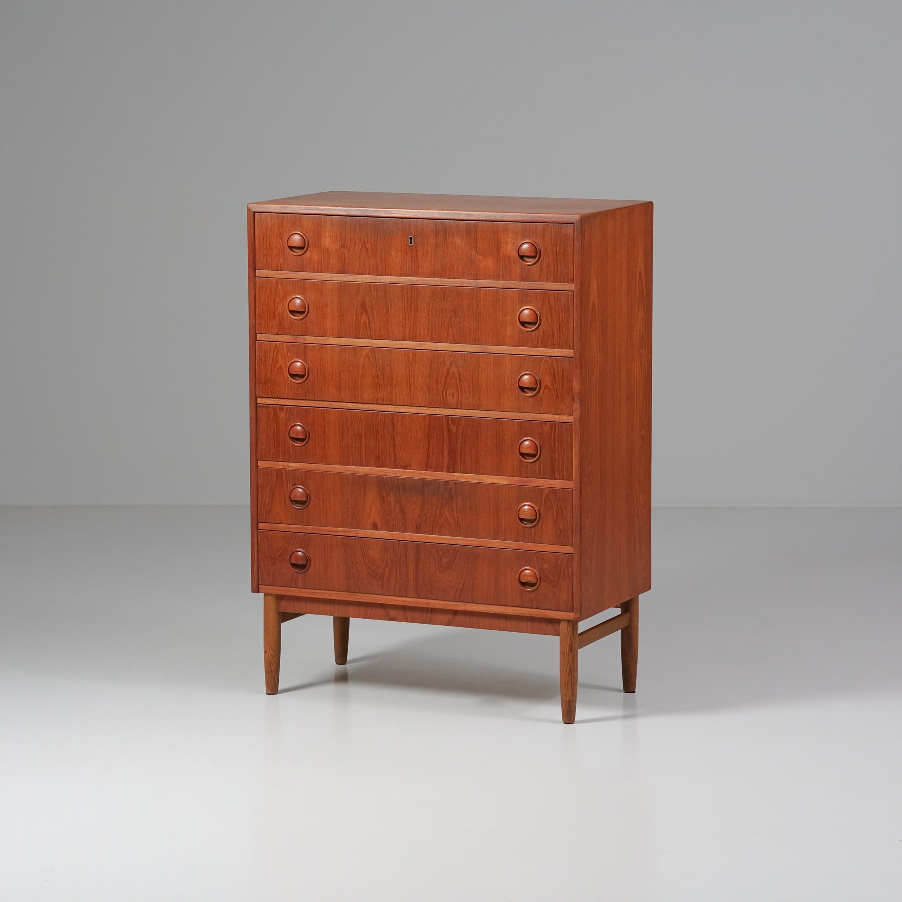 Laatikosto, design Kai Kristiansen, Tanska, 60-luku. Tiikkiä. Tammi jalat. Erittäin laadukas. Hyvä kunto, pientä ajan patinaa.