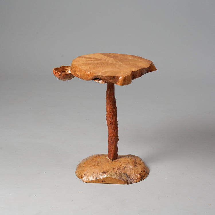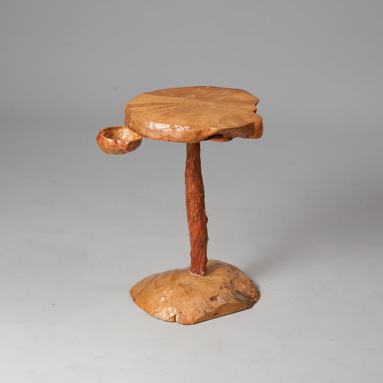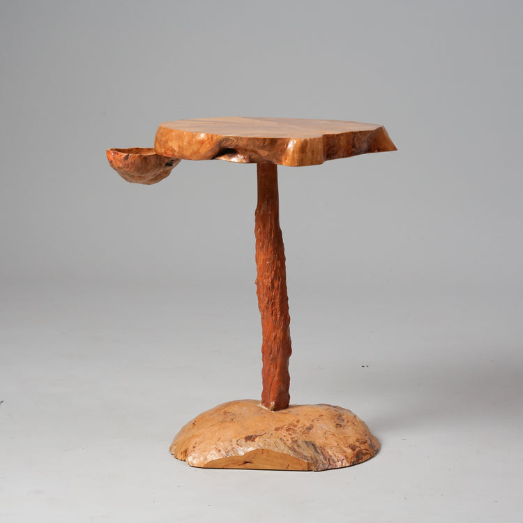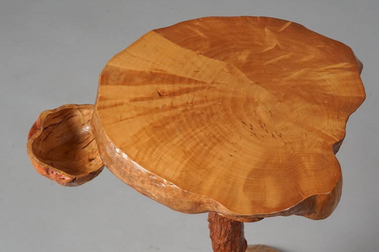 Pahkapöytä, 1900-luvun puoliväli, pöytälevyn alla käännettävä kuppi. Hyvä kunto, pientä ajan patinaa.