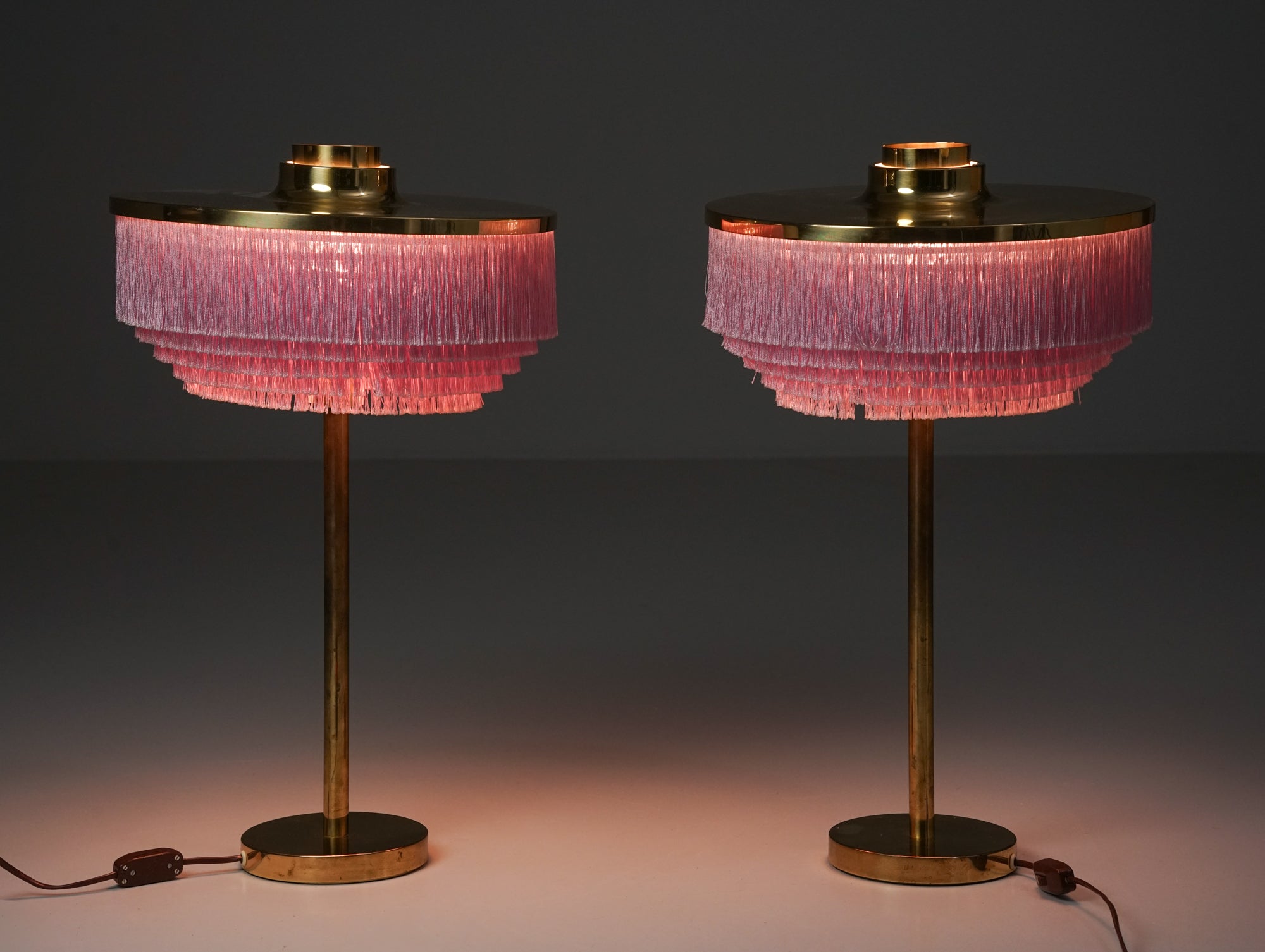 Harvinainen pöytävalaisin pari malli B-138, design Hans-Agne Jakobsson, valmistanut AB Markaryd, 60-luku. Runko messinkiä, kerrostettu hapsuvarjostin. Hyvä kunto, pientä ajan patinaa. Pöytävalaisimet myydään yhdessä. Ilmoitettu hinta on settihinta.
